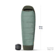 LastnostiProstorna, zoženo pravokotna oblika je idealna za tiste, ki spijo na boku, Stranska zadrga poteka vse do spodnjega dela spalne vreče, kar omogoča uporabo kot odejo. Dva drsnika na zadrgi omogočata prilagajanje prezračevanja, Zadrga YKK #5 z zaščito proti zatikanju omogoča zanesljivo in tekoče odpiranje/zapiranje, Toplotna pregrada vzdolž zadrge pomaga ohranjati toploto in preprečuje vdor hladnega zraka.