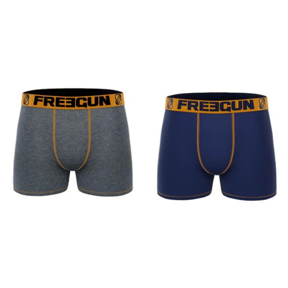 Udobne moške boksarice Freegun so zasnovane z mislijo na maksimalno udobje in popolno prileganje. Izdelane so iz mehkega, elastičnega bombaža, ki je prijazen do kože in zagotavlja prijeten občutek skozi ves dan. Širok elastičen pas z izpostavljenim logotipom blagovne znamke doda sodoben in trendovski videz. Paket vsebuje dva para boksaric, ki so idealna izbira za vsakodnevno nošenje.