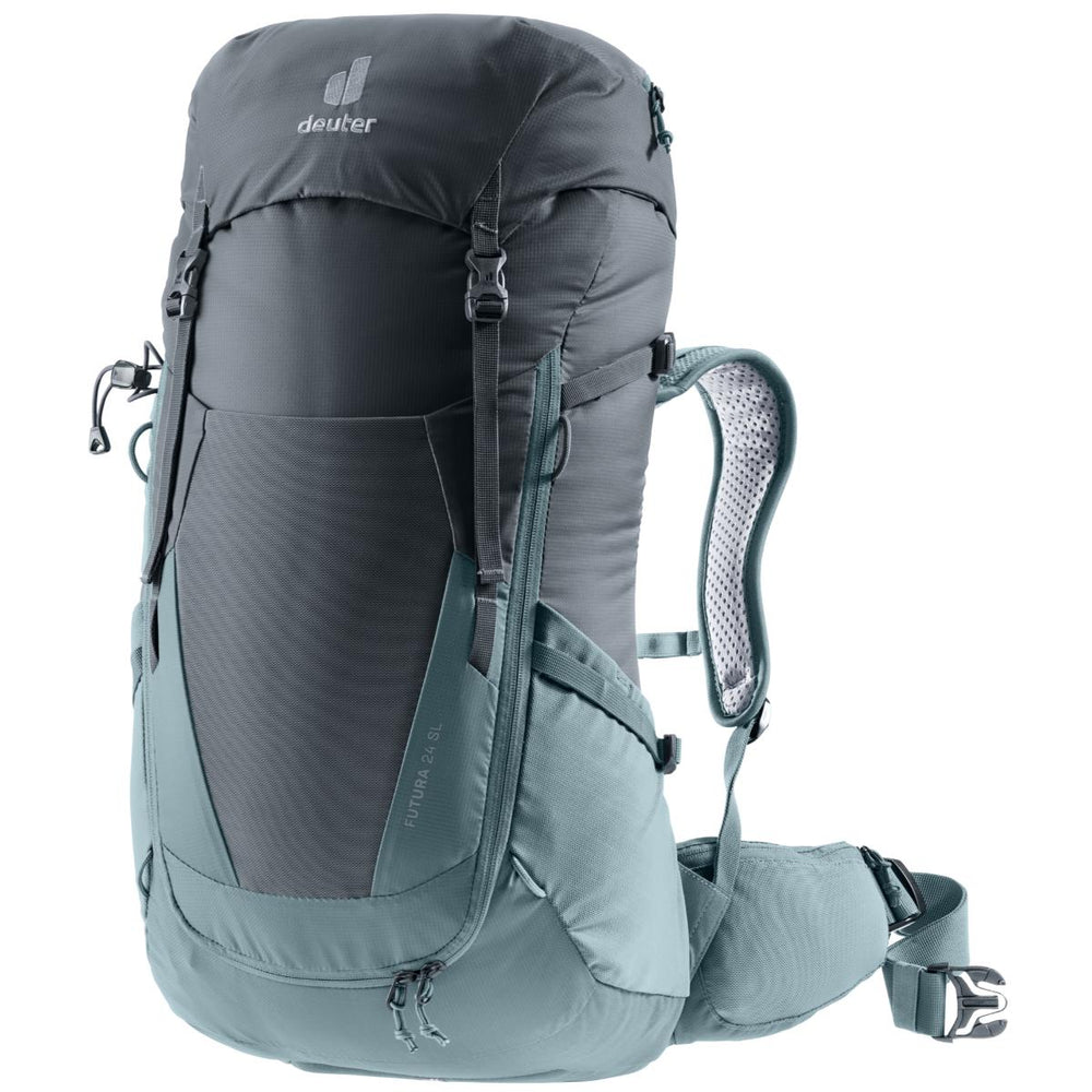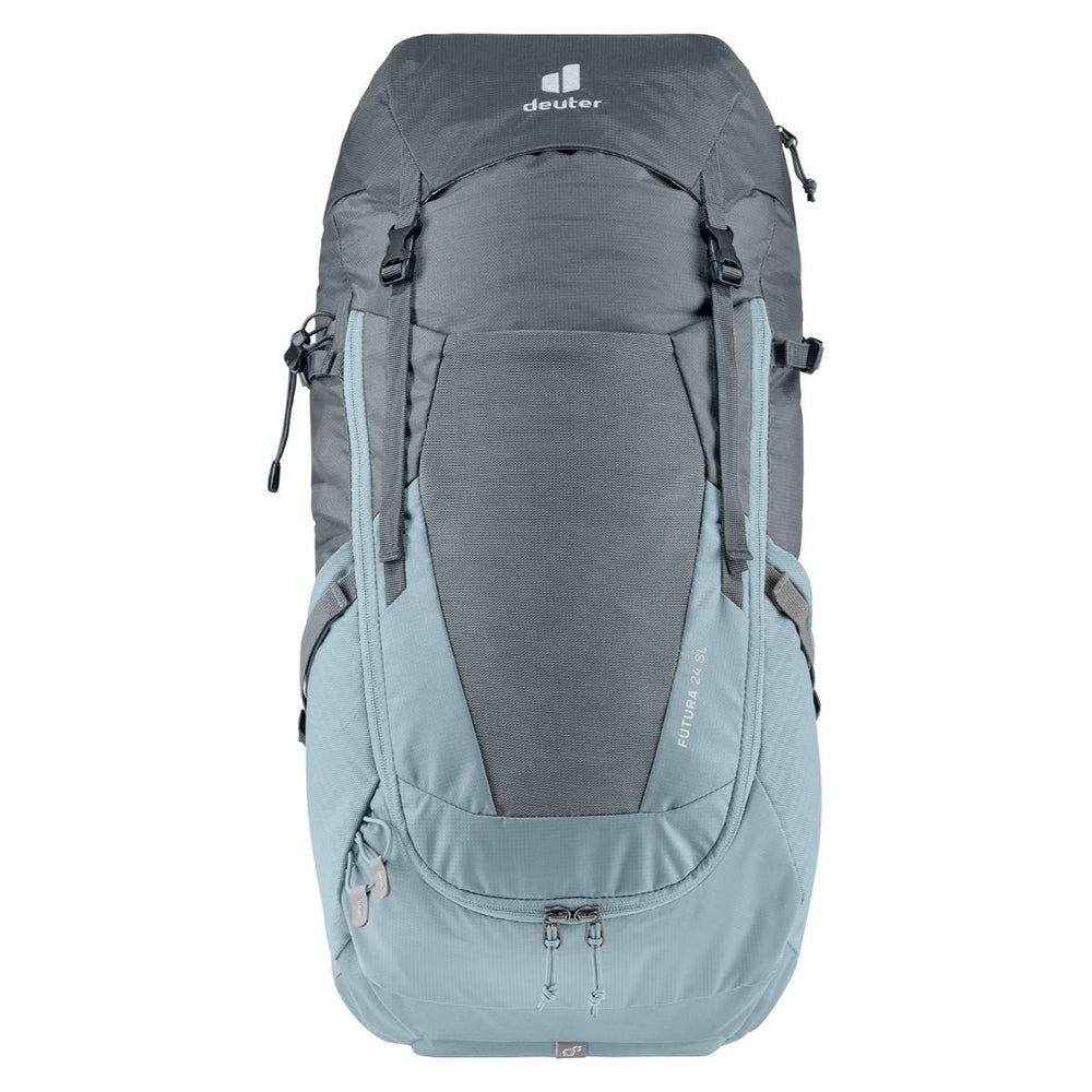 Deuter Futura 24 SL je udoben in zračen pohodniški nahrbtnik, prilagojen ženskemu telesu, s krajšim hrbtiščem in ožjimi naramnicami. Opremljen je z učinkovitim Aircomfort hrbtnim sistemom, ki zmanjšuje potenje, ter prostornino 24 litrov, primerno za enodnevne ture. Ponuja elastične stranske žepe, predal za mokra oblačila, nosilec za palice, odstranljivo dežno prevleko in možnost uporabe hidracijskega sistema. Izdelan je iz trpežnih, okolju prijaznih materialov brez PFC-jev.