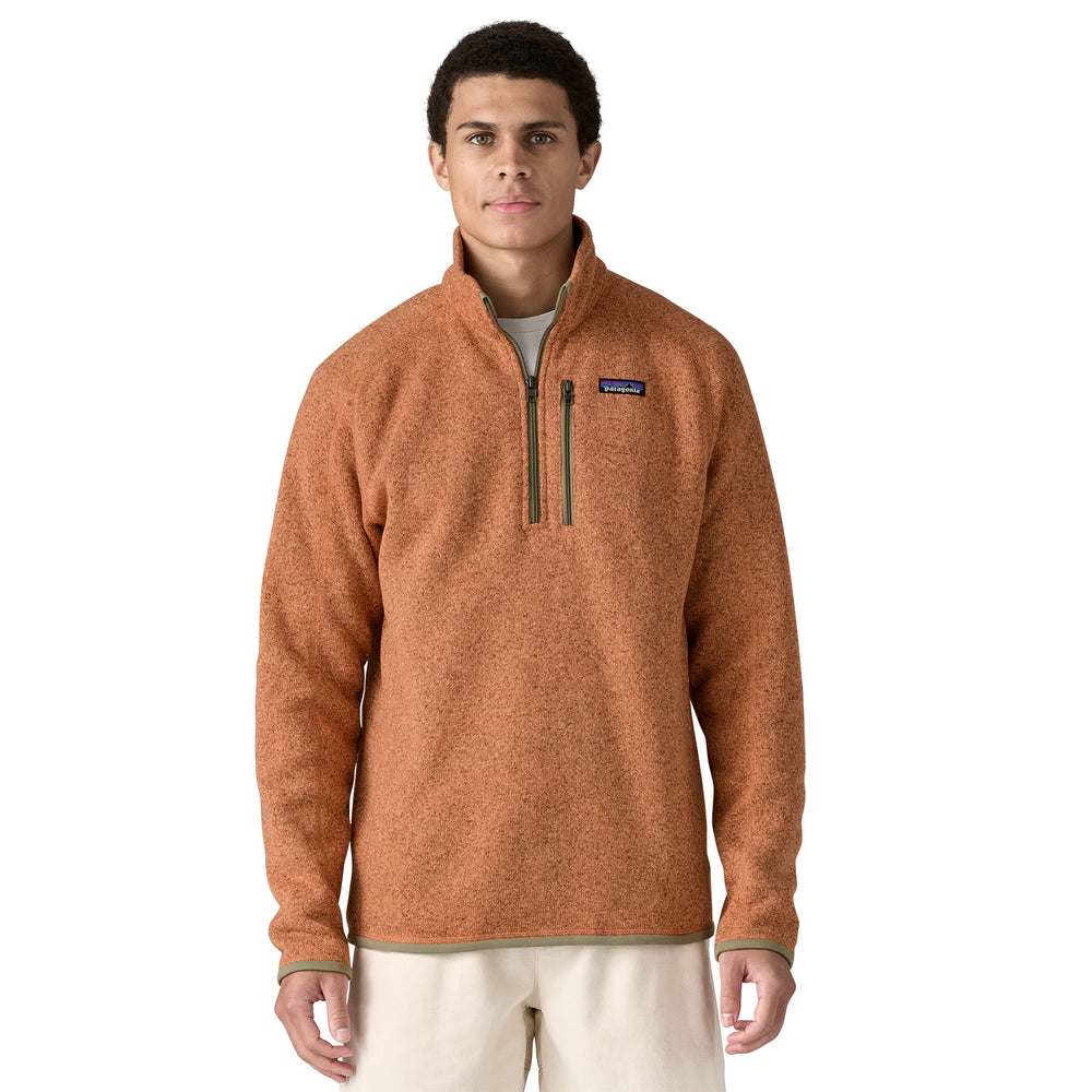 Patagonia moški flis Better Sweater 1/4 Zip je topel in udoben kos iz recikliranega poliestra, ki posnema videz pletenine. Zasnovan je s 1/4 zadrgo za enostavno prilagajanje in je idealen za hladnejše dni, bodisi kot srednji sloj ali samostojno oblačilo. Odraža Patagonijino zavezanost trajnosti in kakovosti, primeren pa je tako za vsakdan kot za aktivnosti na prostem.