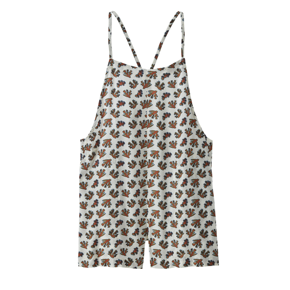 Patagonia Women's Tidal Threads Romper je lahek, zračen poletni pajac, izdelan iz 100% TENCEL™ lyocella, ki je mehak, hitro sušeč in odporen proti mečkanju – popoln za potovanja in sproščene dni. Opremljen je z nastavljivimi naramnicami za udobno prileganje in dvema stranskima žepoma.