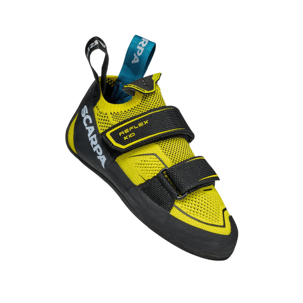 Otroške plezalke Scarpa Reflex Kid so udobne, zračne in lahke plezalne čevlje, zasnovane posebej za mlade plezalce. Imajo elastičen zgornji del iz pletene tkanine, ki omogoča dobro prileganje in enostavno vzdrževanje, sistem PAF v peti za razbremenitev pritiska na Ahilovo tetivo ter nevtralno, rahlo asimetrično obliko, primerno za rastoča stopala. Podplat iz Scarpa Vision gume (≈4 mm) nudi odličen oprijem in vzdržljivost, dva trakova na ježka pa poskrbita za hitro in preprosto zapiranje. So idealna izbira za otroke, ki začenjajo s plezanjem v telovadnici ali na skali, saj združujejo udobje, varnost in funkcionalnost.