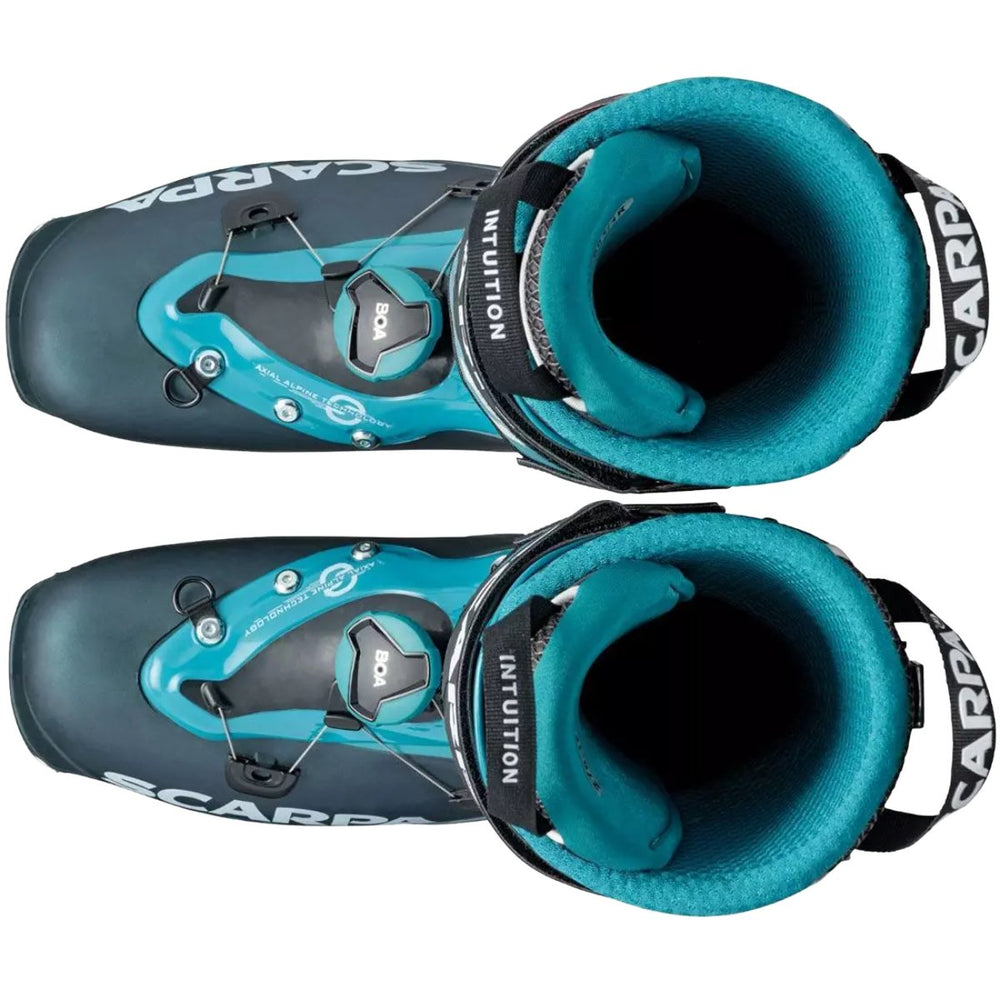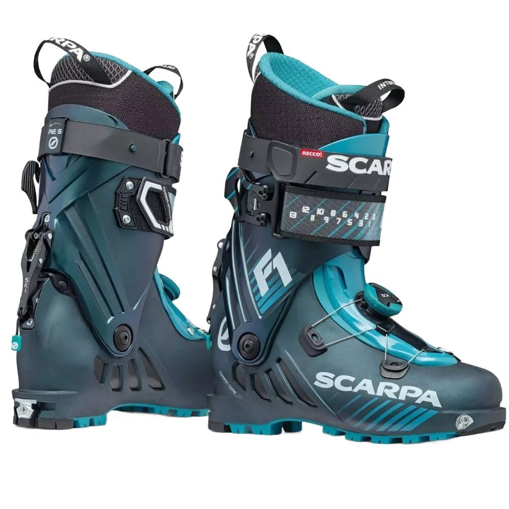 Čevlji za turno smučanje Scarpa F1 so prelomnica v svetu obutve za turne smučarje. Nudijo vrhunsko odzivnost, stransko togost in impresiven 62 stopinjski razpon gibanja. Ponašajo se s prilagodljivim Intuition® notranjim čevljem in vgrajenim oddajnikom RECCO® za hitro iskanje v plazu. Školjka, izdelana iz Grilamida® in karbona, združuje moč in trdnost pri nizki teži. S hitrim sistemom Boa® Fit za zavezovanje in Vibram UFO Evo podplatom so idealna izbira za vrhunske turne smučarje.