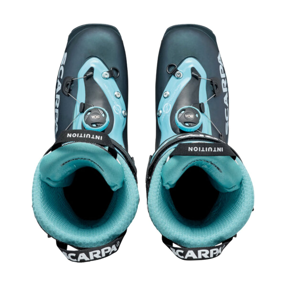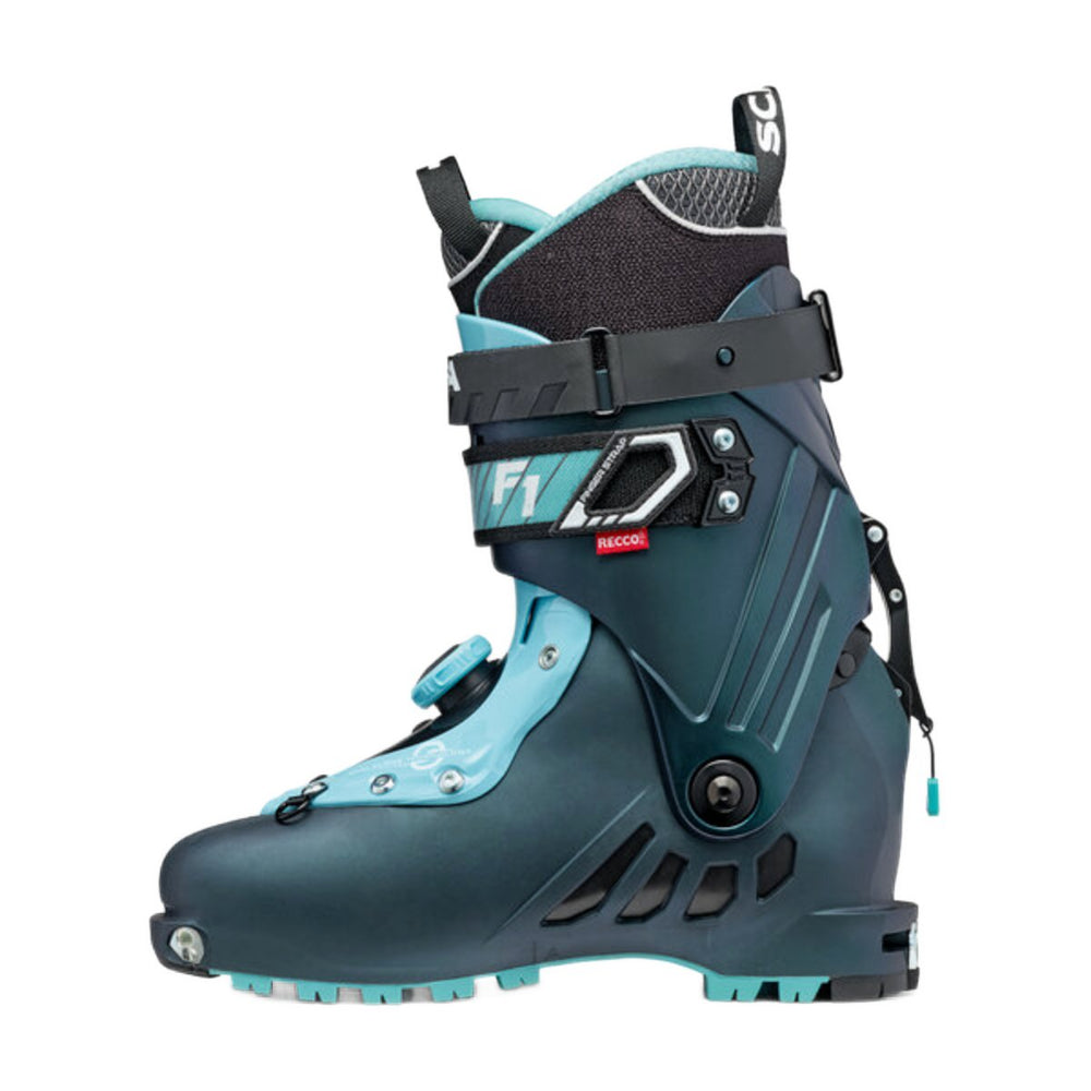 Ženski Scarpa F1 turni pancerji so idealna izbira za tiste, ki si želijo izjemno lahke in udobne smučarske čevlje, vendar brez kompromisov pri zmogljivostih. Z ročko F1 lahko hitro preklopite med hojo in smučanjem, medtem ko dva zategovalca na čevlju omogočata hitro in enostavno prileganje nogi. Odlično se obnesejo pri vzponih. Odlikuje ga odzivnot, stranska togost in neverjeten razpon gibanja - kar 62 stopinj. Ponaša se z Intuition® notranjim čevljem, ki se toplotno preoblikuje, zaradi česar zagotavlja natančno in udobno prileganje stopalu. Obogaten je z oddajnikom RECCO®, ki močno skrajša postopek iskanja zasutega v plazu.