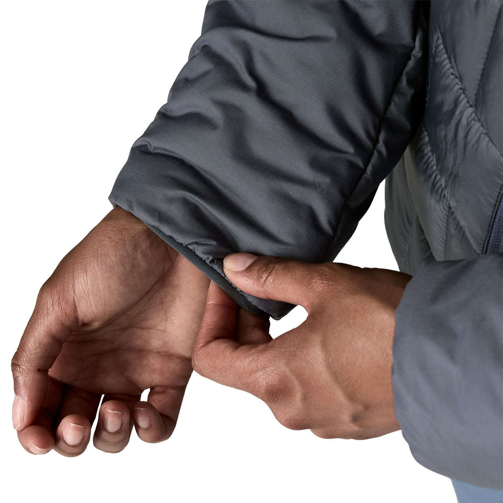 Glavna plast: 100% recikliran poliester ripstop z vzdržljivo vodoodbojno (DWR) prevleko, izdelano brez namerno dodanih PFAS Podloga: 100% recikliran poliester ripstop z DWR prevleko, izdelano brez namerno dodanih PFAS. Izolacija: 170g in 200g PrimaLoft® Silver Insulation Eco 100% recikliran poliester. Tkanine zunanjega dela in podloge so certificirane kot odobrene s strani bluesign®.