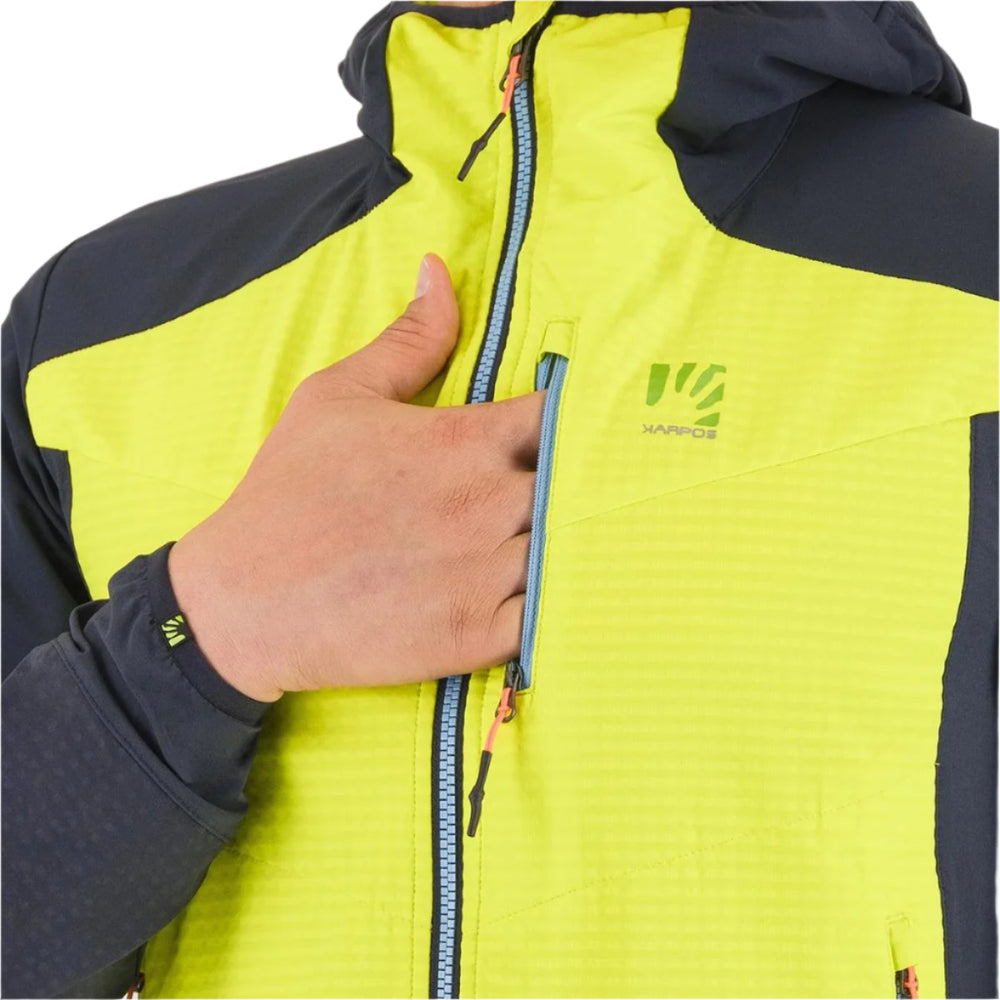 Karpos Lede jacket je zasnovana za vse, ki želijo ohraniti občutek svobode in miru, kot so ga doživeli v svojih najljubših gorah. S svojo hibridno konstrukcijo združuje napredne tkanine in tehnologije, ki zagotavljajo zaščito pred vetrom, udobje in toploto. K-Shell tkanina na zunanji strani ščiti pred hladnim vetrom, medtem ko notranjost nudi prijetno toploto. Kapuca in rokavi so narejeni iz raztegljivega in odpornega materiala, za dodatno zračnost in udobje pa so stranski deli, spodnji rob in manšete iz lahkega, raztegljivega blaga. Idealen je kot dodatna plast toplote, ki vas spremlja na vseh gorskih aktivnostih.