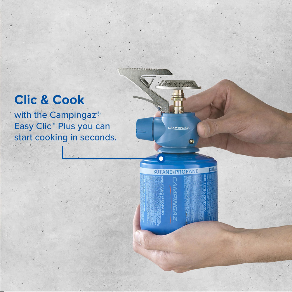 The Campingaz Stove Twister Plus PZ is a high performance portable gas burner ideal for camping, hiking and other outdoor activities. This burner is equipped with an integrated piezo ignition, which allows easy and quick ignition without matches. It is compatible with Campingaz cartridges, which are easy to attach thanks to the Easy Clic® Plus system. The burner has a powerful flame with a power of 2900 W, which allows for quick heating and cooking, as it can boil 1 liter of water in less than 4 minutes. Its compact and lightweight design makes it easy to carry and store, making it a great choice for anyone looking for a reliable and convenient outdoor cooking solution.