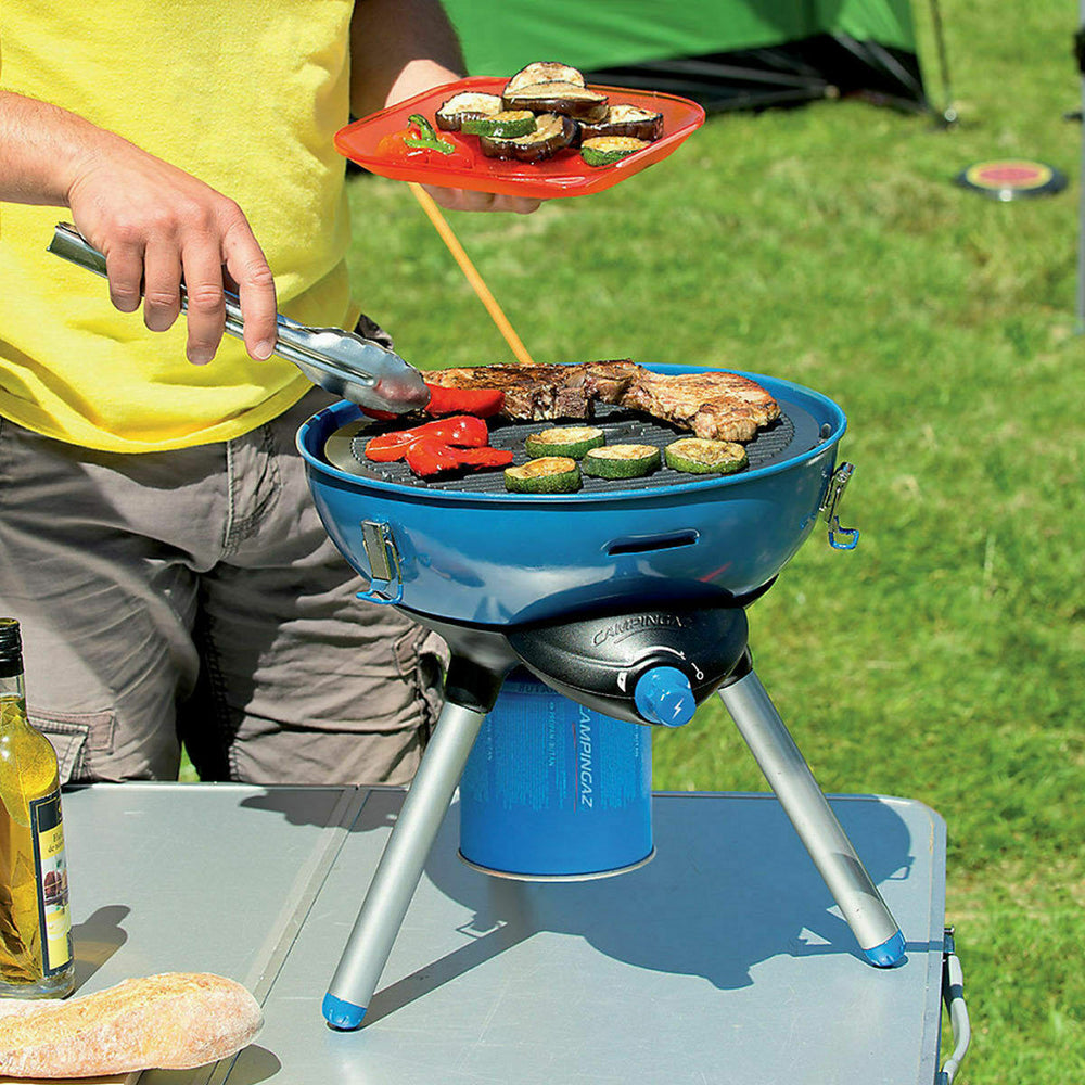 The Campingaz Party Grill 200 is a portable and versatile gas grill designed for easy use during camping, picnics and other outdoor activities. Works on Campingaz CV300 and CV470 cartridges, which can be quickly and securely attached with the Easy Clic® Plus system. With a power of 2000W, it enables efficient baking, with one cartridge providing up to 3 hours of continuous operation. It is equipped with a built-in piezo ignition for easy lighting, stable legs for safe use and a removable grill and drip tray for easy cleaning. Its compact lid design makes it easy to carry and store, making it ideal for all outdoor cooking enthusiasts.