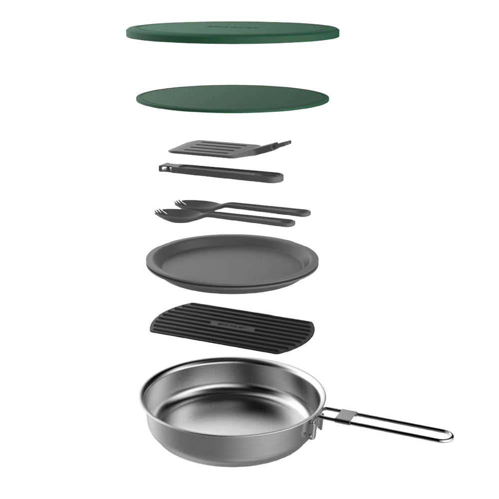 The Adventure Pan Set is the perfect cooking set for all adventurers who love to cook outdoors. It is designed so that all parts fold compactly into a pan for easy portability and storage. The Adventure Pan Set offers everything you need to prepare delicious meals outdoors, whether you're camping, hiking or simply enjoying nature.