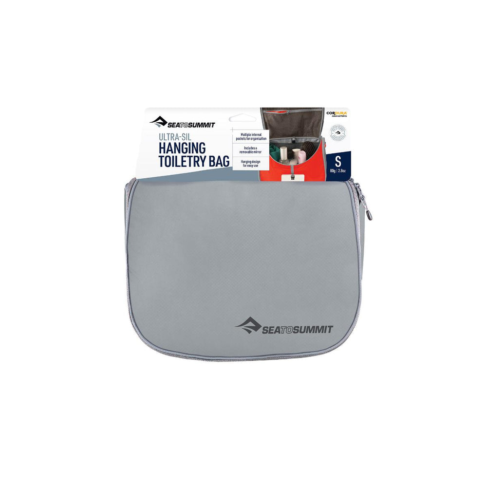 The North Face Toiletry Bag Travel Canister is made of waterproof material. It contains an internal hook that can be used to hang it and a small mirror that can be attached to the hook strap with Velcro.