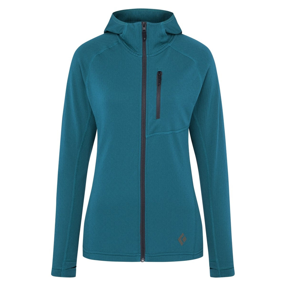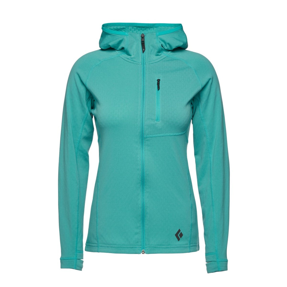 The extremely light and comfortable Coefficient Black Diamond hooded fleece is an ideal intermediate layer for skiing, downhill touring or other activities on cold days. The inside of the jacket is lined with checkered fleece, while the outside is smooth to the touch. The interior is designed in such a way that it perfectly absorbs sweat and offers you additional ventilation during activity. The hood is soft and comfortable, so it is also suitable for wearing under a helmet. It has a tight fit, so you can wear it as an intermediate layer under almost any outfit. It is very soft and provides you with comfort at every step.