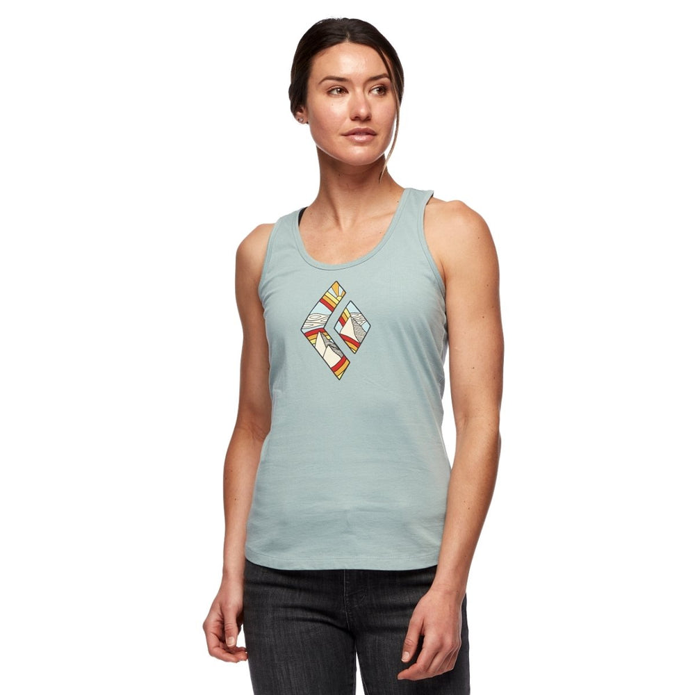 The Black Diamond Rainbow diamond tank top for women is breathable, comfortable and elastic. It is suitable for climbing, hiking and also for everyday wear. Thin straps and a sporty cut allow for comfortable wear and a perfect fit to your figure. It is made of high-quality material that allows flexibility and breathability, ensures comfort during movement and allows maximum freedom of movement. With a beautiful design that combines colored diamonds in iridescent shades, you are sure to stand out from the crowd.