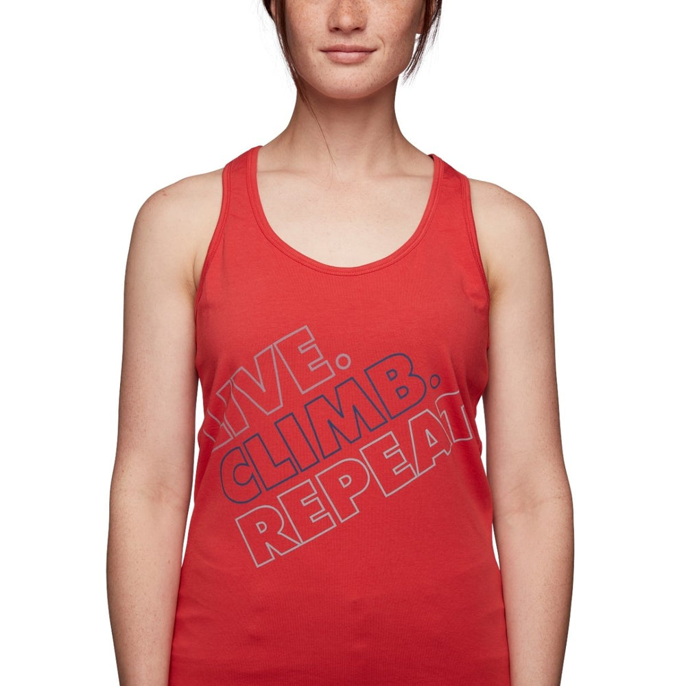 The Live.Climb.Repeat tank top is comfortable and pleasant to wear. It is made of high-quality material that allows comfort during movement and allows the skin to breathe during sports activities. The elegant tailored design perfectly fits the female figure, while the thin straps ensure a comfortable fit without irritating the skin. With a bold inscription you will express your passion for life and climbing and your commitment to continuous improvement.