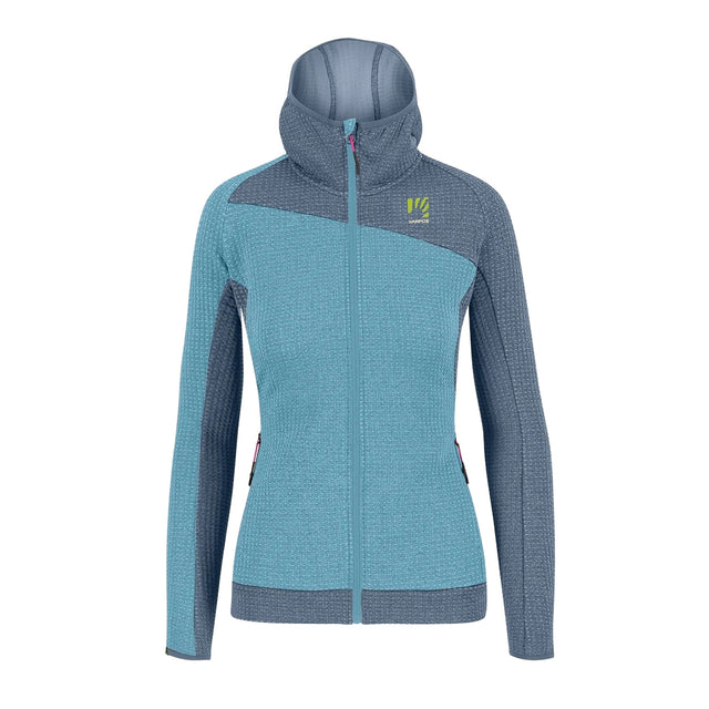 Karpos Averau W Full-Zip Hoodie Fleece je ženski flis s kapuco, zasnovan za poletne aktivnosti na prostem. Izdelan je iz srednje debelega Thermo Fleece materiala, ki združuje toploto, zračnost in svobodo gibanja. Flis ima sprednjo zadrgo z zaščitnim zaključkom, dva žepa z zadrgo, kapuco z elastičnim robom ter elastične zaključke na rokavih, kar zagotavlja udobje in funkcionalnost med različnimi dejavnostmi na prostem.