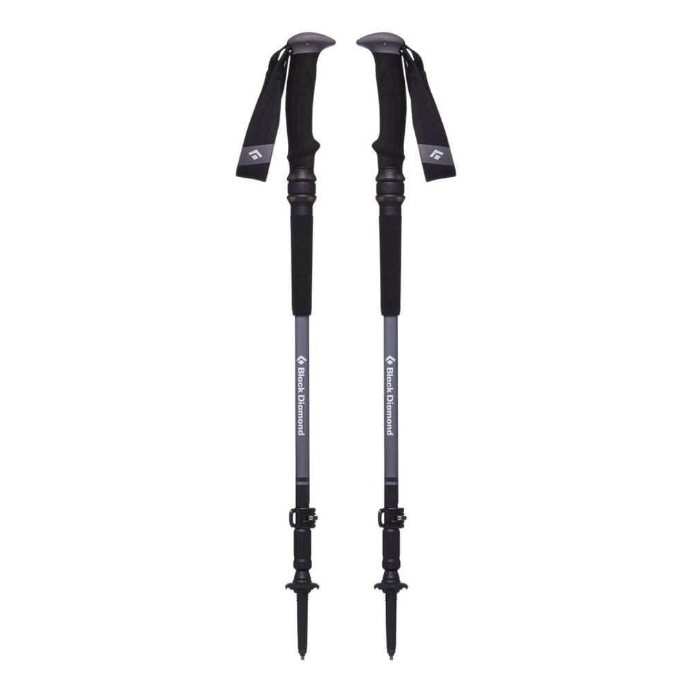 Black Diamond Trail pro shock walking poles are a more robust "PRO" version of trail walking poles and are intended for intensive use. They are used for longer hikes, trekking and winter mountaineering. All elements of the rods are of high quality and technically finished. They are characterized by a comfortable handle with extended foam, premium carbide tips that do not slide on the rock and extremely low weight. When folded, they take up little space and are the right size to attach to the outside of a backpack. They stretch using the FlickLock Pro mechanism, which is light, durable and easy to use. Adjusting the length of the rod is further facilitated by the SmashLock system, which allows easy placement and stacking of the rods. Their specialty is that they have built-in vibration dampers.