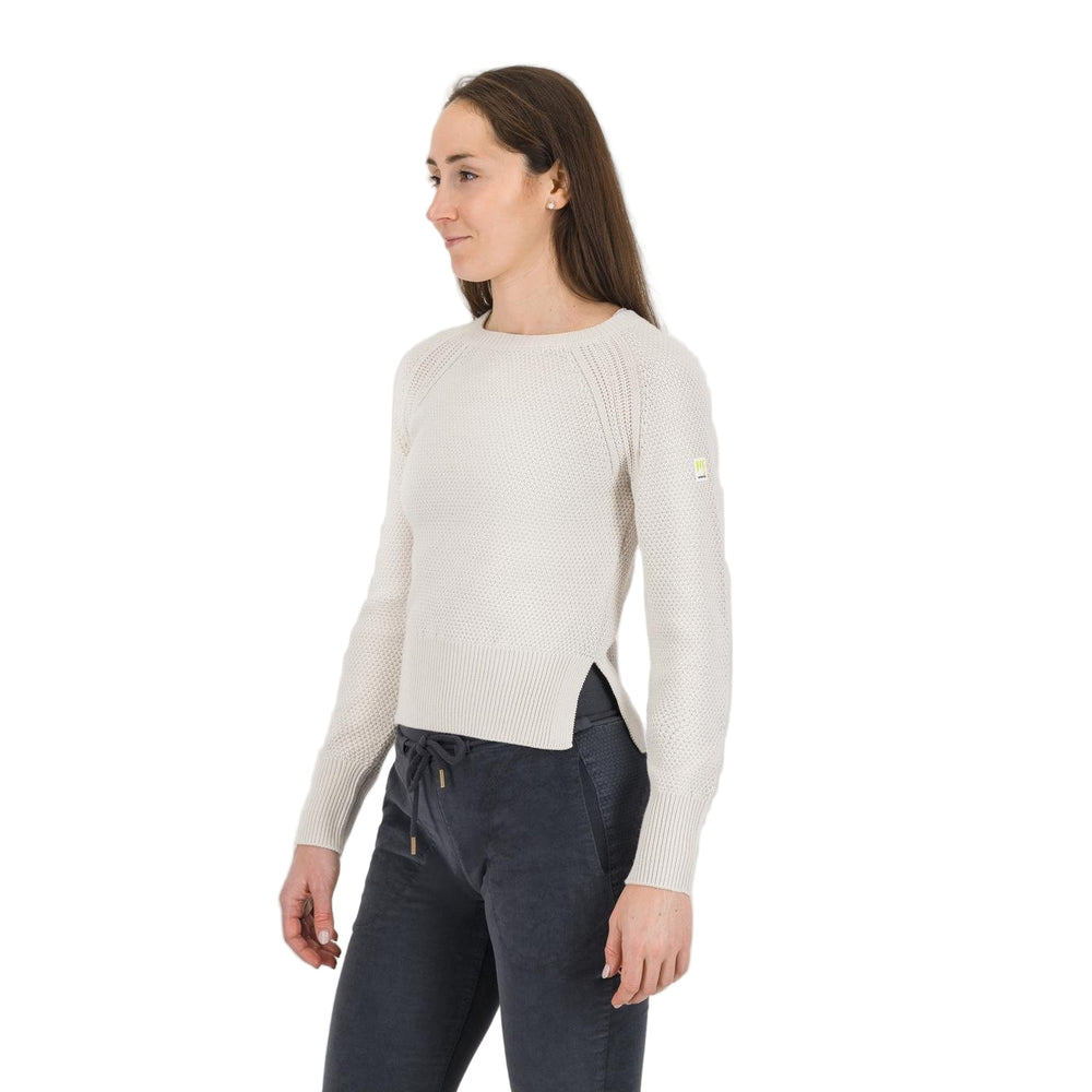 Karpos Ermellino W Crewneck Sweater je ženski pulover, zasnovan za udobje in eleganten videz tako na prostem kot v mestnem okolju. Izdelan je iz 50% volne in 50% akrila, kar zagotavlja toploto, mehkobo in čist, prefinjen izgled. Pulover ima klasičen okrogel izrez in regular fit kroj, kar omogoča enostavno kombiniranje z drugimi kosi oblačil. Zagotavlja lahkotno nošenje brez dodatne teže, hkrati pa ohranja toplino in udobje tako za vsakodnevno uporabo kot za lahke aktivnosti na prostem.